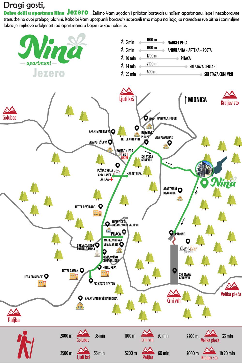 Posebno Vam preporučujemo da obiđete vrhove na Divčibarima a za to smo Vam pripremili mapu koja se nalazi u apartmanu,