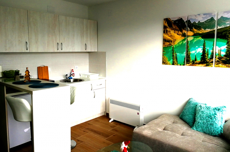 Poseduje dobro opremljenu kuhinju, kao i kupatilo sa tuš kabinom. Apartman ima besplatan internet dobrog protoka ,