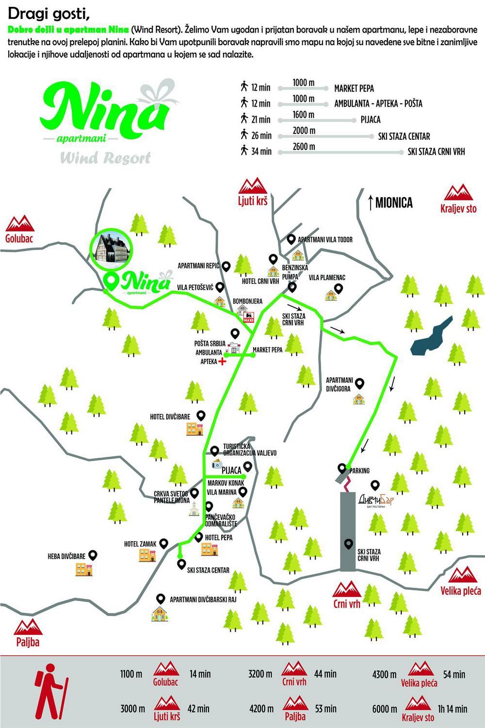 Apartman Nina Wind Resort se nalazi na odličnoj lokaciji, do koje se dolazi asfaltiranim putem koji je uvek prohodan.